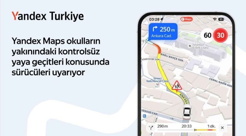 Yandex Maps, Türkiye’deki okul bölgelerindeki kontrolsüz yaya geçitleri için sürücülere yönelik yeni bir güvenlik özelliği geliştirdi. Yaklaşık 12 bin noktada