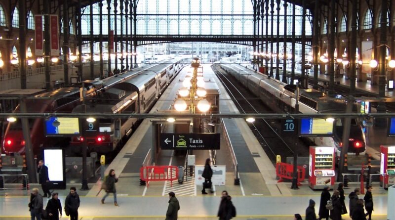 Paris’in dünyadaki üçüncü en işlek tren istasyonu olan Gare du Nord’a gelen ve giden tren seferleri, Cuma sabahı raylar üzerinde
